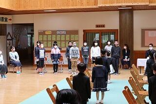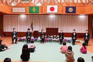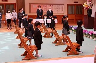 名前を呼ばれると、元気な声で返事をして、お話もきちんと座って聞くことができました。上級生のお兄さん、お姉さんも、歓迎の言葉をのべて新入生を迎えました。早く学校生活になれるといいですね。