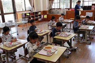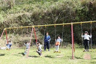 入学式の翌日の様子です。運動場で1年生はブランコを楽しんでいました。お昼には、さっそく給食も始まり、いっぱい新しい経験ができました。