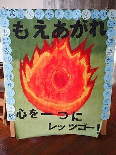 今年の運動会のスローガンは「もえあがれ心を一つにレッツゴー!」です。この言葉と37人の子どもたちが選んだ一文字の漢字を使った看板が完成しました。19日(日)の運動会では、子どもたちの活動の様子だけでなく、この看板もぜひご覧ください。子どもたちの熱い気持ちがこもっています。