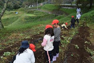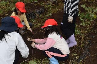 10月23日(木)に1・2年生は学校近くの畑でいもほりをしました。たくさんのいもがとれて、子どもたちはとても嬉しそうでした。保護者の方にも手伝っていただきながら2時間かけて一生懸命に掘ることができました。