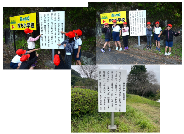 押方小学校 生活標語の看板を設置しました。