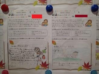 写真は、子どもたちが家で本を読んだ感想をかいた「家読カード」です。いろんなジャンルの本を読んで、本に親しんでいることが伝わってきます。保護者の方もしっかりとお子さんの様子を見届け、コメントも書いていただきありがたいです。このような取組を通して、子どもたちが本を読むことが好きになり、少しでも読書習慣を身につけてくれることを願っています。
