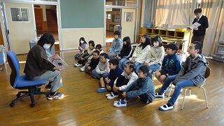 10月30日(木)の朝の時間に、職員による読み聞かせを行いました。子どもたちは事前に伝えられた本の題名だけをもとに本の内容を想像し、聞いてみたい本がある場所へ行って、その本を選んだ職員に読み聞かせをしてもらいました。今回の読み聞かせが、子どもたちの読書意欲の向上につながり、いろんな本に出会って豊かな心を育んでくれるとうれしいです。