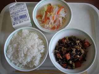 20日(金)弁当の日を前に、今日の給食はチャレンジ給食でした。これは、『わかめご飯、大豆のかき揚げ、