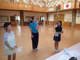 7月2日(火)に全校朝会を行いました。まず、校長が七夕に関する○×クイズを出し、子どもたちは楽しそうに考え、答えていました。クイズの後は、短冊に書いた願いを叶えるために何をすればよいかを考えることが大事であり、1学期の反省も振り返るだけでなく、そこからどう行動すればよいかを考えましょうという話がありました。次の生徒指導主事からの話では、自分たちの生活を写真で振り返りながら、7月の生活目標を確認しました。