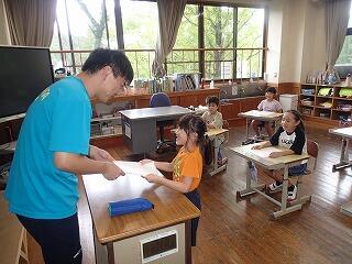 上学年が下学年に教える、友達同士で教え合う姿は、本校ではよく見られる光景です。他者に優しく接することができることが本校の子ども達のよいところの1つです。本校は、今年度、人権教育推進校になっています。これからもこのように他者のよいところを認めたり、困っている人を助けたりして、子ども達に望ましい人権感覚がさらに身につくことを期待して指導していきます。