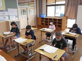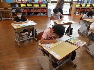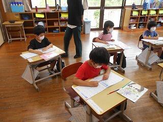 厳しい暑さが続いていますが、子どもたちは元気に活動しています。1学期のまとめをしている学級もありました。漢字や計算など、4月5月に学習した内容を忘れていることもあるようです。繰り返しやっています。