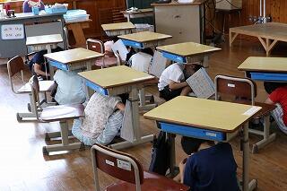台風11号の影響で、午前中授業、13時30分下校となりました。台風の被害がでないことを願っています。学校では、3時間目に地震の避難訓練を行いました。理科室や音楽室からの避難経路の確認などをしました。子どもたちは、全員真剣に参加していました。
