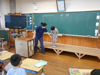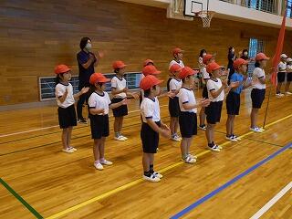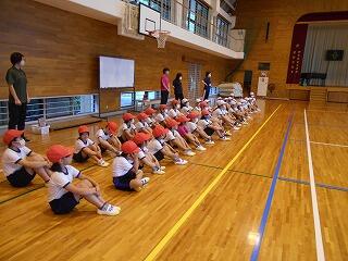 今日は、1年生が体育館で体力テストの練習をしていました。腹筋のやり方や幅跳びなどのやり方を確認していました。本来であれば、体力テストを行う時期なのですが、子どもたちの体調を見ながら、実施時期を考えているところです。運動場を走り回るようにならないと体力が戻らないのではないかと心配しているところです。