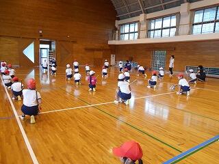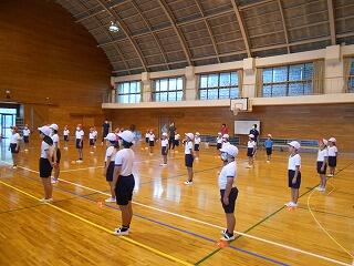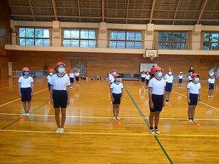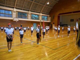 全校体育でしたが、雨の影響で体育館での練習でした。開会式、閉会式、エール交換など、たくさん練習しましたが、子どもたちが頑張っていたので、十分満足できる内容でした。今週末の台風の影響が心配です。被害がでないことを願うばかりです。