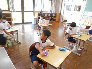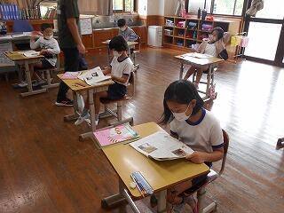 台風4号の影響で、雨が降ったりやんだりでした。強い風などがないといいのですが、わかりませんので対策はしておきたいと思います。朝は、読み聞かせがあったので、子どもたちは楽しそうでした。今日も元気にがんばっていた子どもたちでした。
