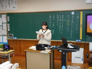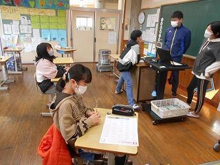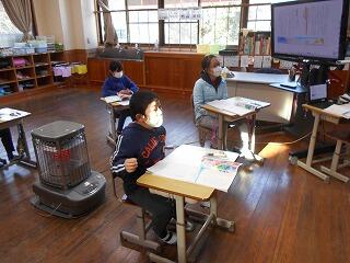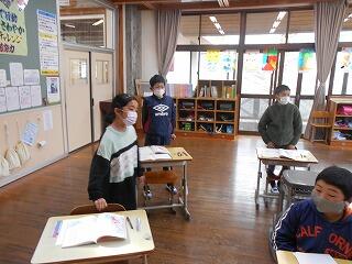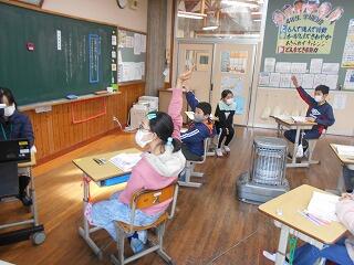 土曜日(22日)の深夜の地震にはびっくりしました。被害はなかったようですが、日頃から地震への備えをしておかないといけないと改めて考えさせられました。今日の子どもたちも、寒さに負けず、元気です。2年生は、1m定規を使って教室や広間の長さを測っていました。友だちと協力しての活動が楽しそうでした。