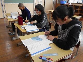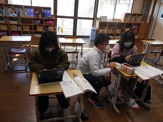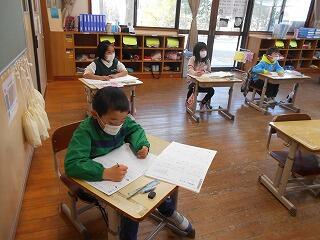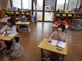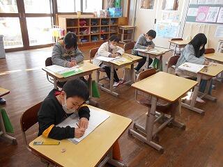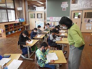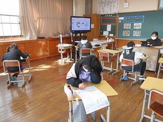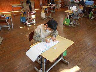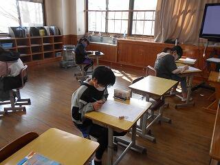 春がいよいよ近付いていると感じさせてくれる日中の暖かさでした。年度末が近付いているので、どの学級でも、まとめの時間になっているようです。1年間の学習を振り返るとともにテストも行われていました。