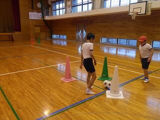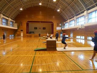 4年生が、体育館でミニバレーボールの授業をしていました。初めてだったので特別なルールがあったようです。