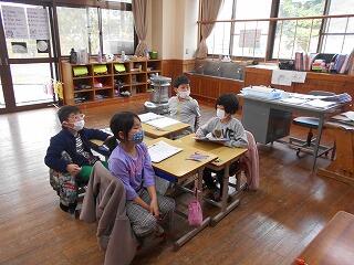 太陽の光が当たった場所は、とても暖かく感じる日となりました。学級ごとに、2学期の反省をしてお楽しみ会をしているようでした。2年生の学級の写真を撮り損ねました。明日たくさん撮ります。