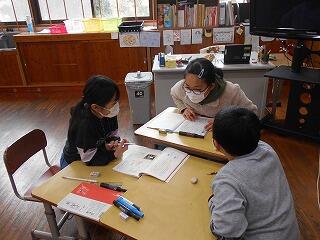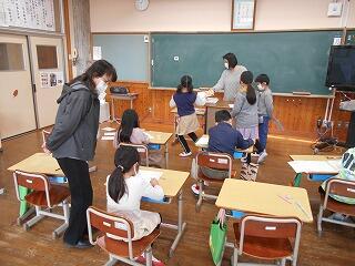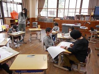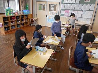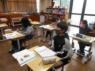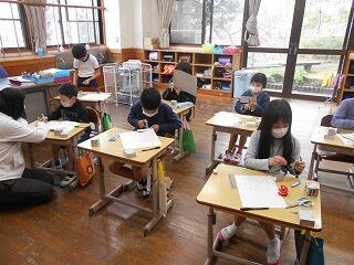 2年生の図工では、画用紙に「まど」を作る工作をしていました。先生が、代表的な「まど」を紹介して子どもたちが作っていました。どんな作品になるのか楽しみです。1年生は、音楽室で「きらきらぼし」に合奏の練習をしていました。難しそうにしていましたが、それぞれの子どもたちががんばって練習していました。他の学年も、楽しそうに学習に取り組んでいました。