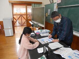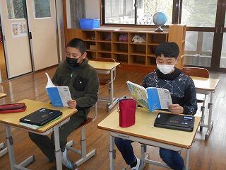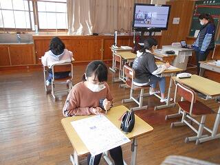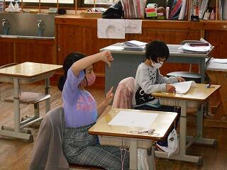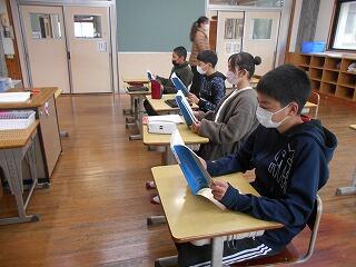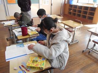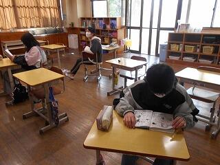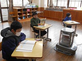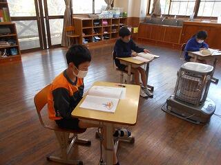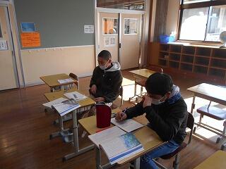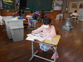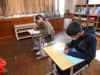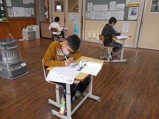 天気予報の中で雪が降るということだったので、寒くなると覚悟していました。給食後から雪が舞い、予想通りとても寒くなりました。体調を崩さないように気を付けてほしいと思います。今日は、5・6年生が習字をしていました。5年生の習字には間に合わず残念でした。6年生は、とても集中して書くことができていました。