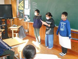 毎日のおいしい給食への感謝をする「給食感謝集会」が行われました。4人の委員会の子どもたちががんばっていました。クイズの中で、子どもたちの人気メニューの紹介があったのですが、1位は「神楽うどん」2位は「たこやきふう」でした。昨年は、1位が「たこやきふう」だったということで、少し好みが違ったようです。