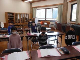 全校児童で卒業式の練習を行いました。予行練習だったのですが、子どもたちがよくがんばっていました。練習後に、高千穂町の川柳に応募していた子どもたちへの表彰も行いました。楽しい川柳ができていました。