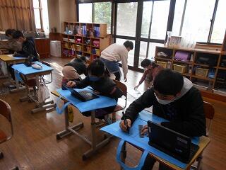 1年生から4年生までは、高千穂小学校で合同学習会でした。楽しみにしていた子が多かったようです。それから、5年生だけは、学校に残っての学習でした。自分たちだけで学校を自由に使えると楽しそうにしていました。