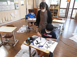 今朝は雪が舞う中の登校でした。そして、日中も雪が舞っていたので、とても寒い1日となりました。寒い中でしたが、子どもたちは元気に過ごすことができていました。5・6年生が、朝から習字をしていたので1・2時間目の様子を紹介します。