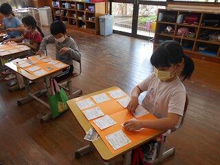 登校中に、「今日、漢字テストがあります。ドキドキです。」という話を聞いたので、漢字テストの様子を見に行きました。10分ぐらいたって行ったのですが、もう終わっていました。50問テストだったのですが、「簡単だった。」ということでした。よくがんばっている子どもたちです。