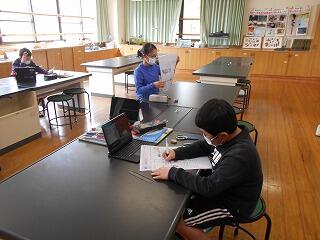 5・6年生が、午後から調理実習をしていました。6年生は、ジャーマンポテト、5年生は、ごはんとみそ汁作りでした。味見をさせてもらったのですが、どちらもとてもおいしくできていました。お家でもぜひ作ってほしいと思います。