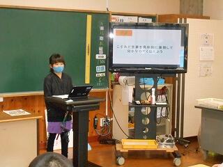 延岡警察署の方を招いての、非行防止教室を行いました。低学年と高学年に分かれてだったのですが、真剣に話を聞き、インターネットの便利さとは違う危険な面や個人情報の大切さなども学ぶことができたようです。子どもたちが、熱心に話を聞いていたので、終わった後に、警察署の方からほめていただきました。