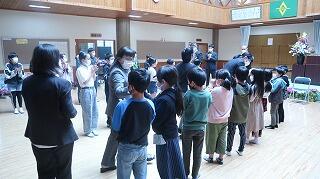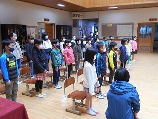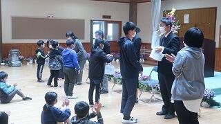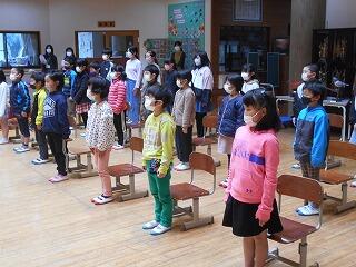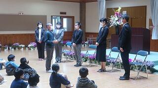 離任式を行いました。今年は、5名の先生方が離任されます。子どもたちは、卒業した子どもたちも含めて全員参加してくれました。少しさみしい気持ちになりましたが、新しい学校でもがんばってほしいと思います。