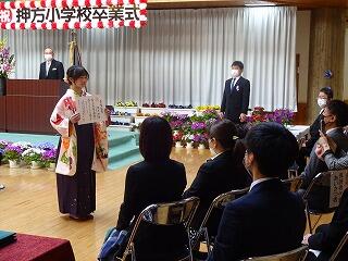 第75回押方小学校卒業式が行われました。4名の卒業生が堂々とした態度で式を終えてくれました。たくさんの方に愛されて育ってきたんだと改めて実感しました。4名の子どもたちのこれからの頑張りに期待したいと思います。在校生も、とても立派な態度での参加でした。門出の言葉の中の歌は、今までで一番上手に歌えていました。
