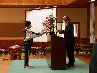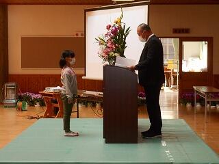 令和3年度の修了式でした。学年の代表が修了証をもらいました。子どもたちは、学級でもらった通知表にドキドキだったようです。1年間、よく頑張っていた子どもたちでした。