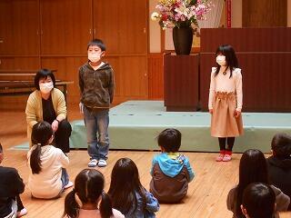 チャルネイロという演奏団体をお迎えして、音楽鑑賞教室を行いました。お芝居仕立てのコンサートということで、街角にある小さなギフトショップ「音色」というお店の店員さんが、全員ミュージシャンという設定でのコンサートでした。子どもたちが知っている歌などを披露していただきました。その中で、5年生の興梠珠奈さんの「めだか」という詩に曲をつけて歌ってくださいました。そして、「名前」という曲では、子どもたち全員の名前が歌の中に出てくるなど、とても楽しい演出がなされていました。子どもたちは、大満足のコンサートになりました。とても楽しい時間を過ごすことができました。