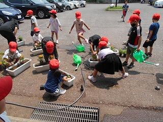 昼休みに、地域の方に来ていただいて花の苗植えをしました。一人一鉢の花と学級園、それから、児童玄関前のプランターに花を植えました。少し暑かったですが、しっかりと植えることができました。協力してくださった皆様に感謝です。