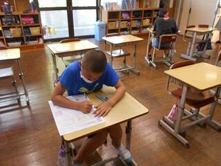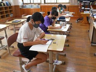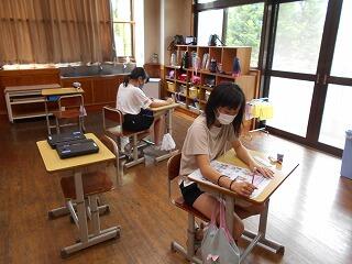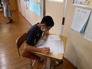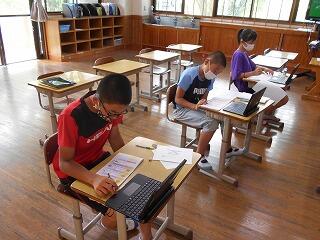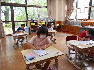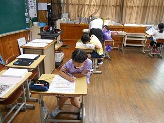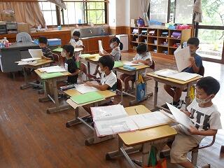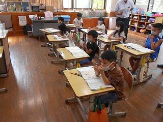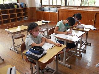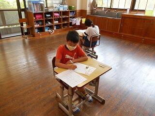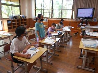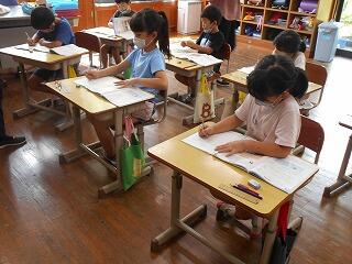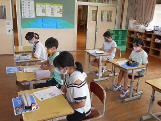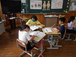 学校では通常通り、授業を進めていました。1年生は漢字の書き取りをしていました。2年生は文章を書いていました。4年生と6年生は、昨日の続きをしていました。みんな落ち着いて授業に集中していました。