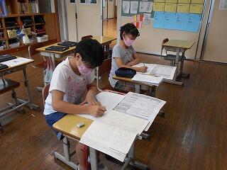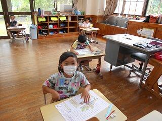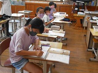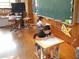 とても気持ちのよい1日となりました。5・6年生は、朝から習字を行っていました。どちらも真剣に取り組んでいました。練習することでどんどん上手になっていました。それから、4年生は、百人一首をしていまいた。2年生もしているのですが、2年生の方が素早くとりそうな感じでした。がんばれ4年生。ちなみに2年生は、かけ算九九の7の段を学習し、覚えるためになんども繰り返し声に出して唱えていました。7の段は、覚えるのに苦労します。がんばってほしいと思います。1年生は、漢字の学習でした。ずいぶん漢字が書けるようになっています。