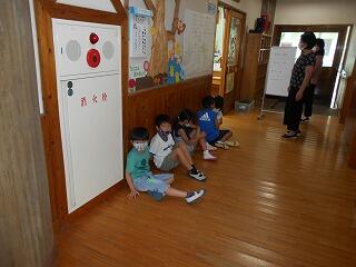 4年生の教室の窓に、押方小学校の紹介のロゴが飾ってありました。音楽発表で使ったものです。なかなかいい感じでした。それから、3時間目には、避難訓練(火災)が行われました。子どもたちの避難は、放送があってから、2分で運動場に避難できたということで、消防署の方からほめていただきました。5・6年生の児童は、消化器の使い方も教わりました。貴重な体験となったようです。