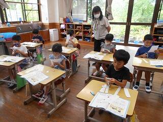 2年生が、来週予定されている1年生を招待しての活動の準備をしていました。9名の2年生が、工夫を凝らした遊びを提供して1年生に楽しんでもらう計画だそうです。楽しそうに準備をしていました。来週が楽しみです。