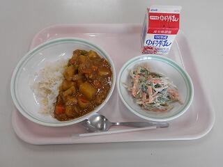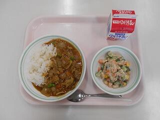チキンカレーライス・牛乳・ハムサラダ・お祝いデザート
