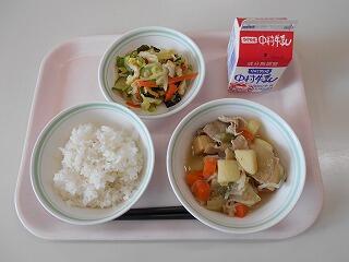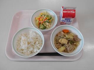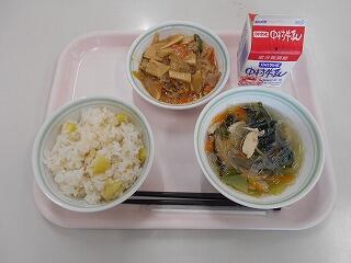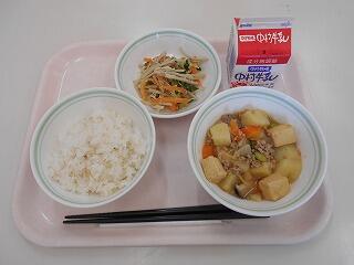 麦ごはん・牛乳・じゃがいものそぼろ煮・ごぼうサラダ