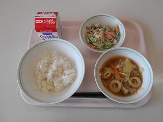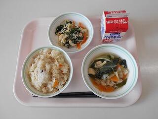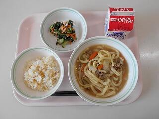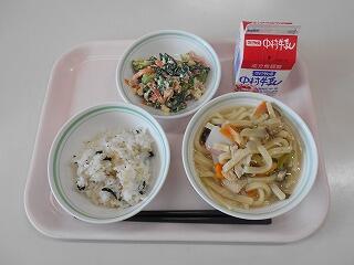 減量わかめごはん・牛乳・田舎うどん・洋風白和え