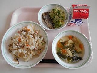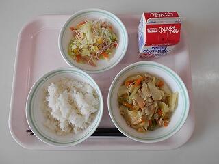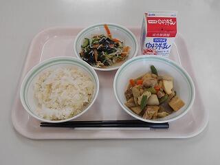 たけのこごはん・牛乳・厚あげのあんかけ・れんこんのサラダ