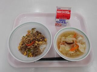 高千穂牛っと丼、牛乳、高千穂野菜スープ