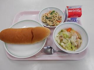 コッペパン、牛乳、ポトフ、スパゲティサラダ