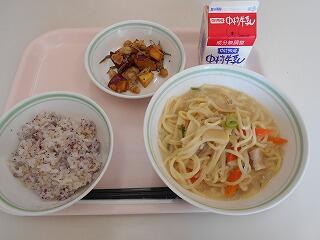 麦ごはん、牛乳、千切り大根の卵とじ、だご汁