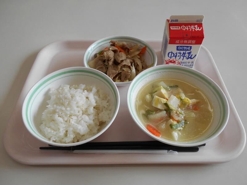 麦ごはん、豚肉のしょうが炒め、みぞれ汁、牛乳