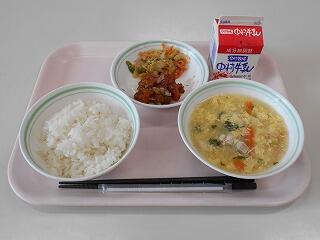 麦ごはん、高野豆腐の卵とじ、ツナとわかめの酢の物、牛乳