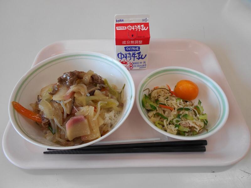 減量わかめごはん、神楽うどん、まめまめサラダ、牛乳
