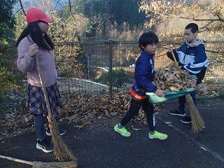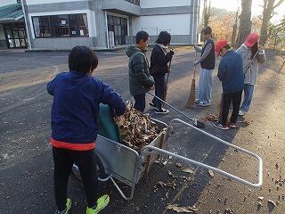 本校の駐車場には大きなイチョウの木があり、この時期は落ち葉がいっぱいです。学級担任や校長先生に見守られながら、5・6年生が中心となって子どもたちは毎日朝のボランティア活動を行っています。寒さに負けず活動を続ける姿は立派です。おかげで、いつもきれいな学校になっています。
