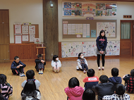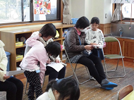 子どもたちは、とても静かにお話に見入り、耳を傾け、絵本の世界に引き込まれている様子でした。どちらも朝から楽しく笑顔になれるお話でした。
