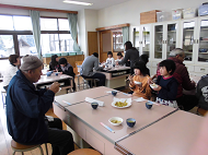 そして、いよいよ3校時が「おいもパーティー」。1・2年生の芋作りに協力していただいた地域や保護者の方々に、子どもたちが事前に招待状を送っており、今日は、お忙しい中5名の皆さんが参加してくださいました。